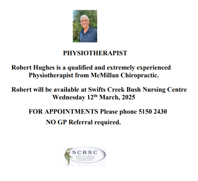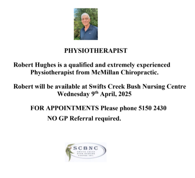 PHYSIOTHERAPIST Robert Hughes visit on 9th April 2025