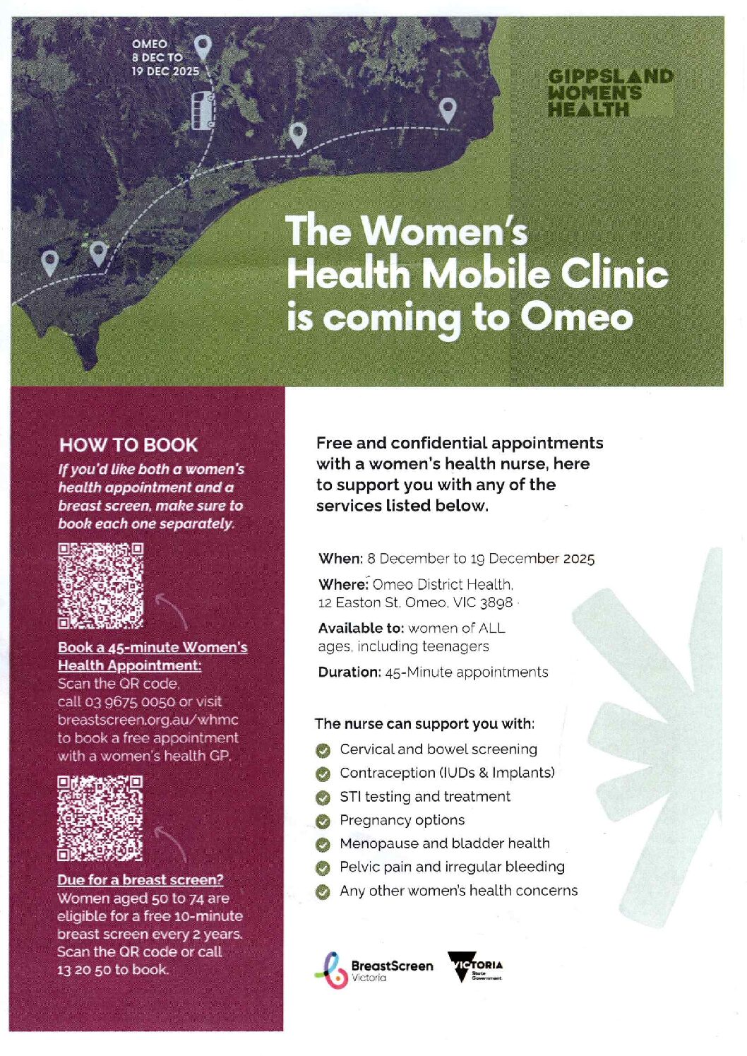 The Women’s Health Mobile Clinic is coming to Omeo – 8th – 19th December 2025